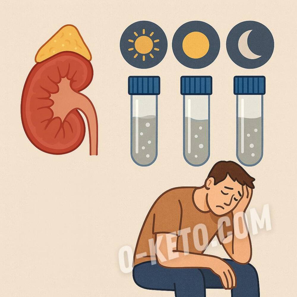 Истощение надпочечников, или так называемая надпочечниковая усталость (adrenal fatigue), можно заподозрить, если уровень кортизола снижен в течение всего дня, а не только в одном замере.