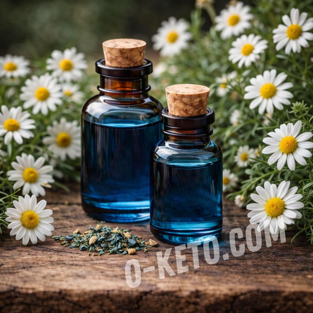 German chamomile essential oil has a unique composition that fundamentally distinguishes it from Roman chamomile and other species. The key active substances are chamazulene, alpha-bisabolol and its oxides, as well as sesquiterpenes.