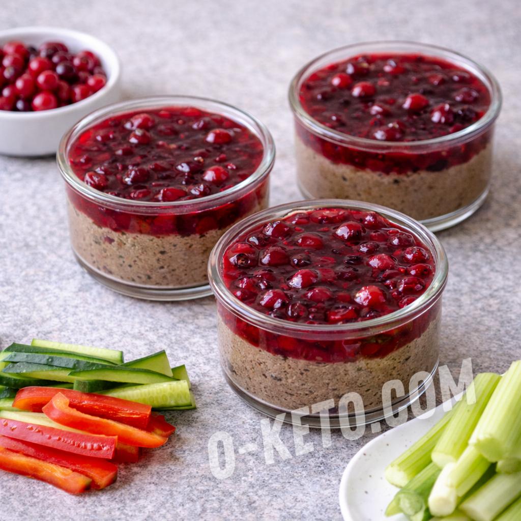 A source of vitamins A and B12, this pâté helps improve metabolism and supports liver health. The combination of spices and cranberry jam gives the dish a rich flavor and aroma, making it perfect for appetizers.