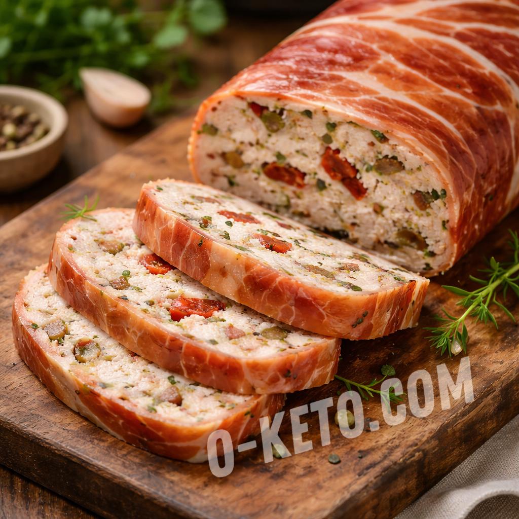 Bacon increases the juiciness of the terrine.