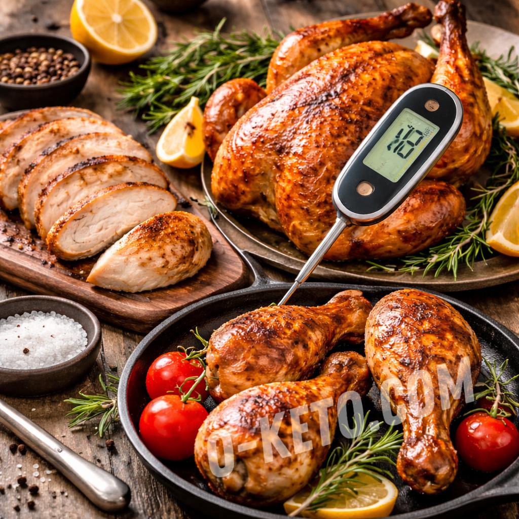 Готовность курицы лучше определять не «на глаз» и не по цвету сока, а по внутренней температуре. Это самый надёжный и безопасный способ, который одновременно помогает сохранить мясо сочным и не пересушить его.