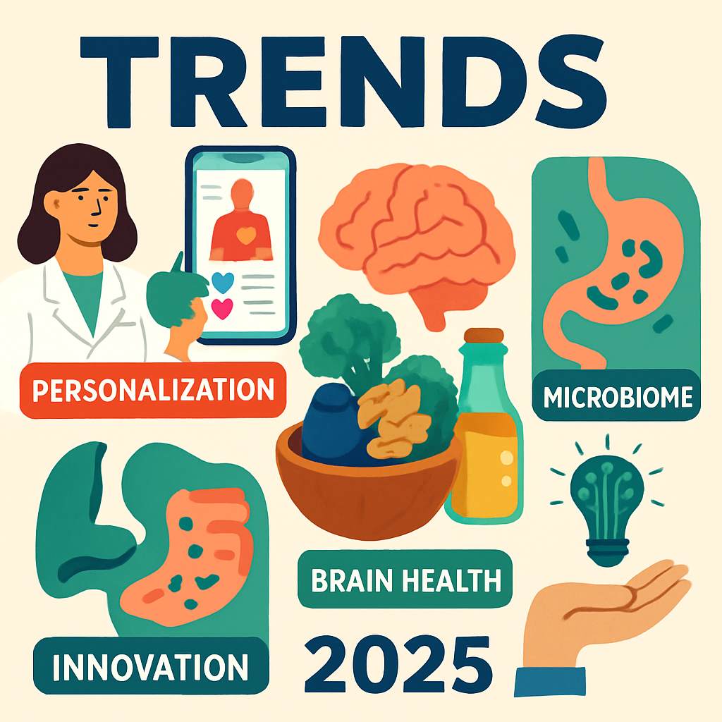В 2025 году нутрициология продолжает выходить за рамки классических диет и калорий, становясь комплексной наукой о здоровье, психике и экологии. Главные тренды этого года — персонализированный подход, забота о мозге и микробиоте, а также внедрение инновационных технологий.