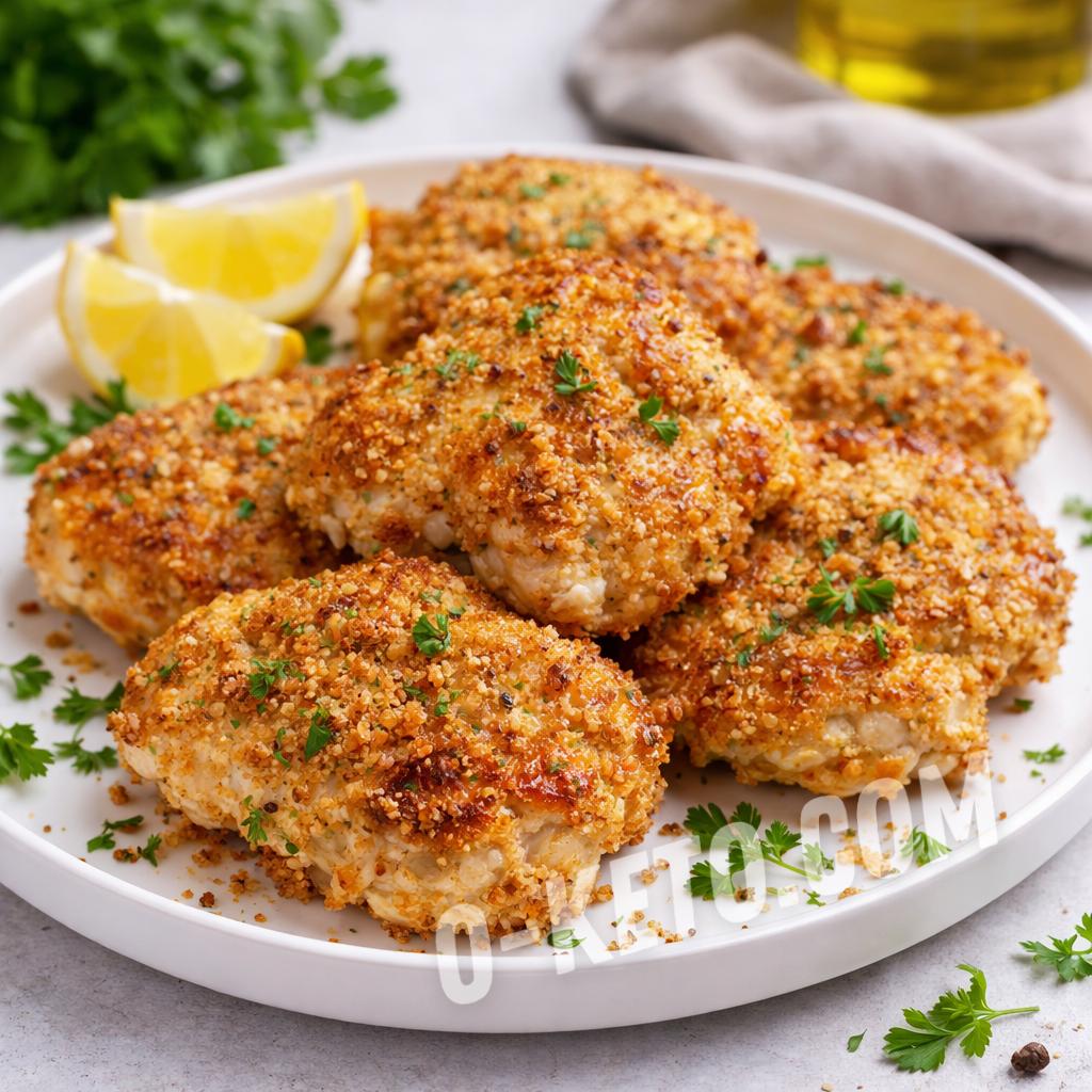 Источник белка и полезных жиров, это блюдо богато кальцием и витаминами, благодаря пармезану и оливковому маслу. Хрустящая панировка из миндальной и льняной муки придает насыщенный вкус и текстуру. Идеально подходит для кето-диеты и поддержания энергии.