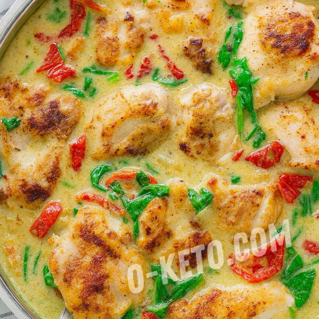 Курица со шпинатом, болгарским перцем и чили в кокосовом соусе