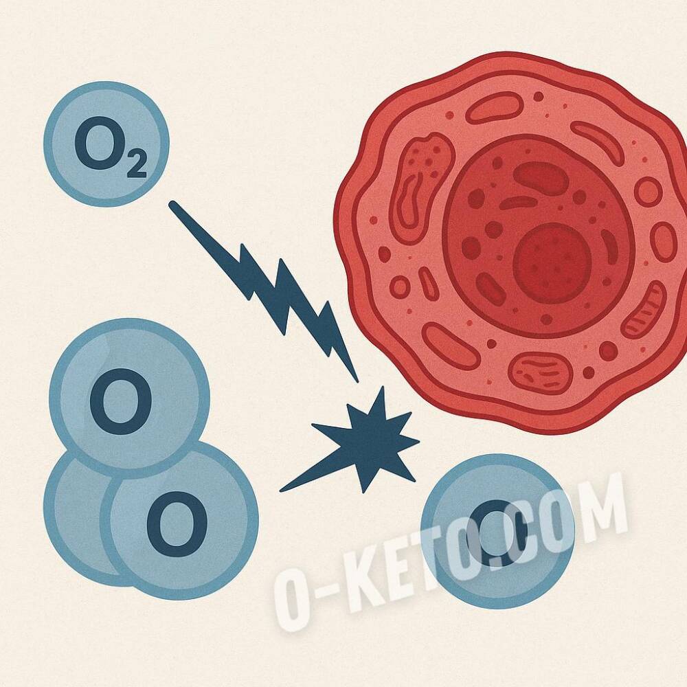 Acest oxigen atomic intră imediat în reacții de oxidare — caută o pereche pentru a se reduce la forma stabilă O₂. În organism, el "își ia" electroni de la alte molecule — de exemplu, lipide, proteine și ADN, provocându-le daune. Acest proces este oxidarea radicalilor liberi.