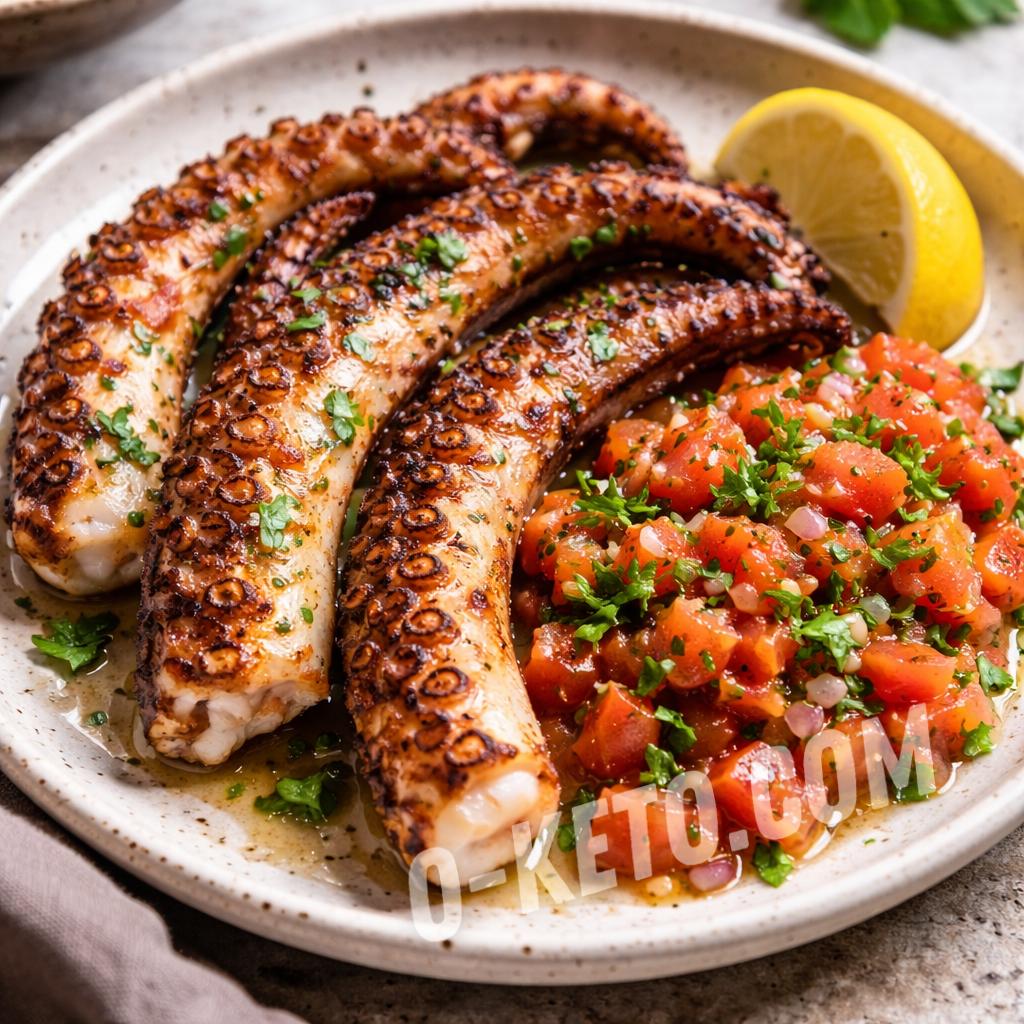 Sursa de proteine și acizi grași sănătoși, caracatița susține sănătatea inimii și a creierului. Salsa din roșii proaspete și verdeață adaugă vitamine și antioxidanți, iar sucul de lămâie oferă un gust vibrant. Ideal pentru o cină ușoară și hrănitoare.