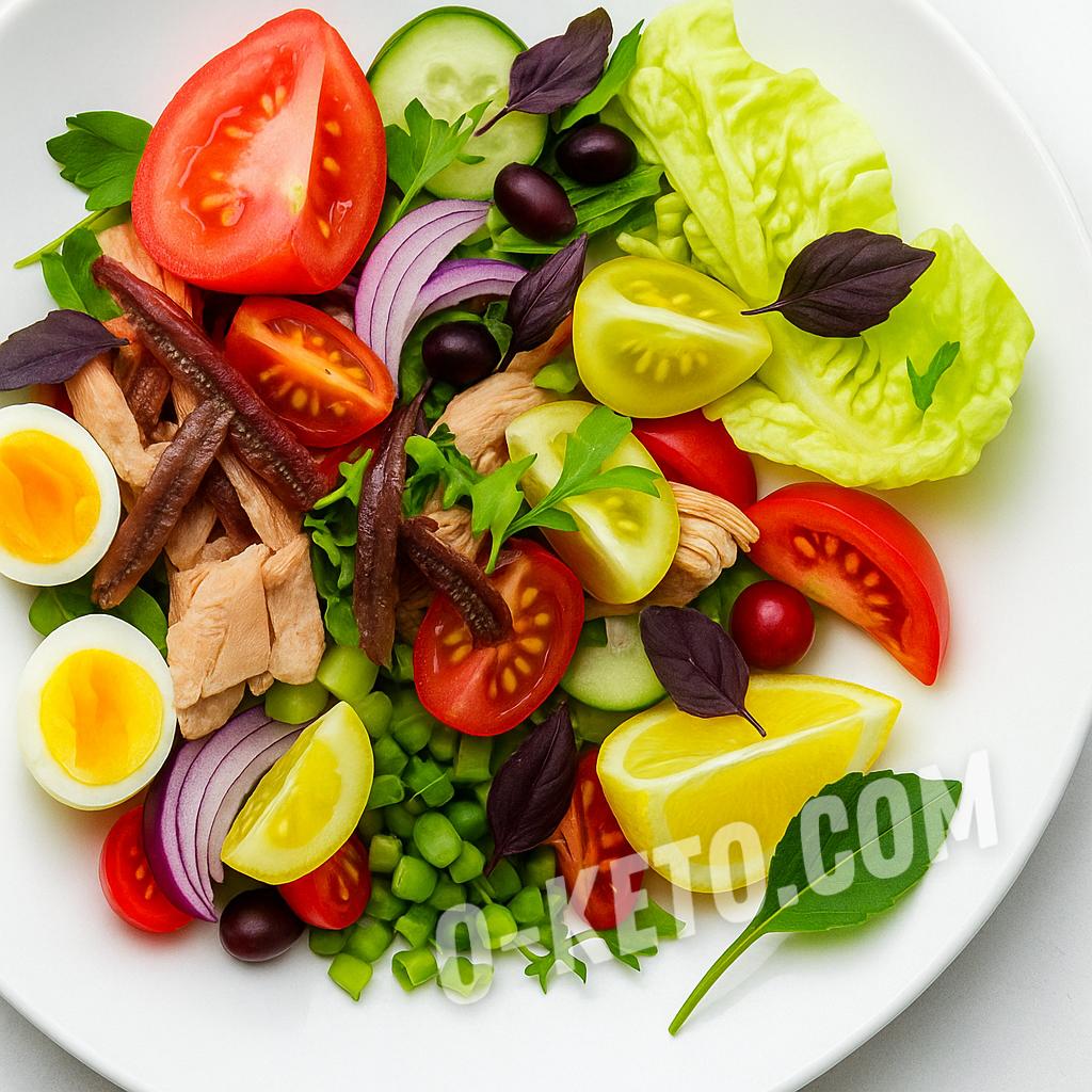 Sursă de proteine și acizi grași omega-3, această salată susține sănătatea inimii și a creierului. Legumele colorate adaugă vitamine și minerale, iar anșoa adaugă un gust bogat, fiind perfectă pentru o cină ușoară.