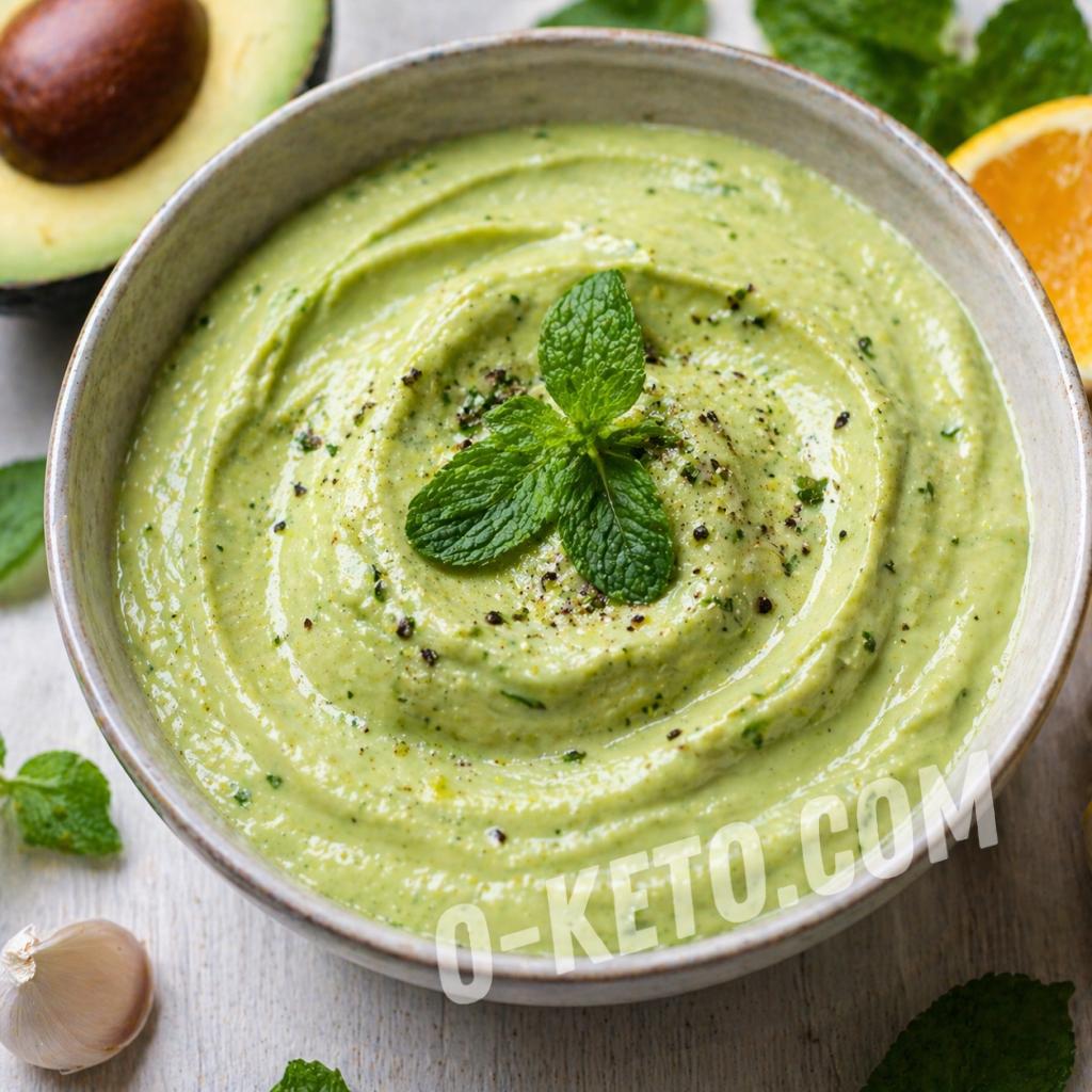 Sursă de grăsimi sănătoase și vitamine, acest sos cremos îmbină cremozitatea avocado-ului și prospețimea mentelor cu o notă citrică de portocală, oferind preparatului un gust vibrant și o valoare nutritivă.