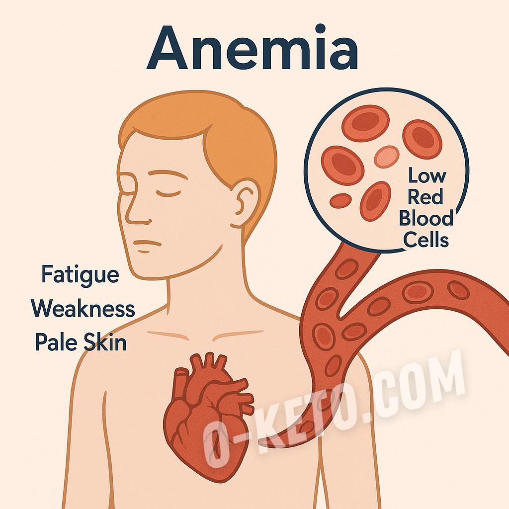 Anemia — este o stare în care se reduce numărul de eritrocite sau nivelul de hemoglobină din sânge, ceea ce face ca țesuturile să primească mai puțin oxigen.
