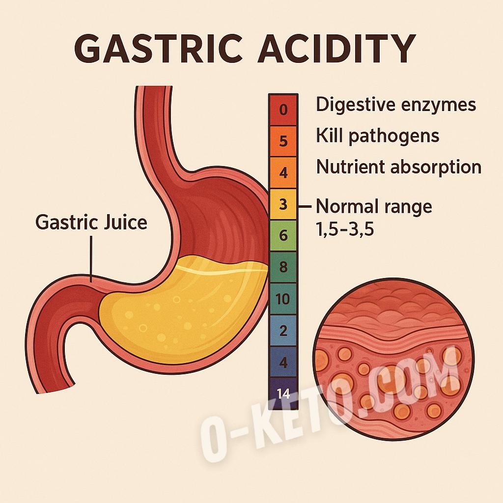 Существенное влияние на уровень кислотности оказывает характер питания. Высокоуглеводный рацион, особенно основанный на рафинированных продуктах и недостаточном потреблении белка, снижает стимуляцию париетальных клеток желудка.